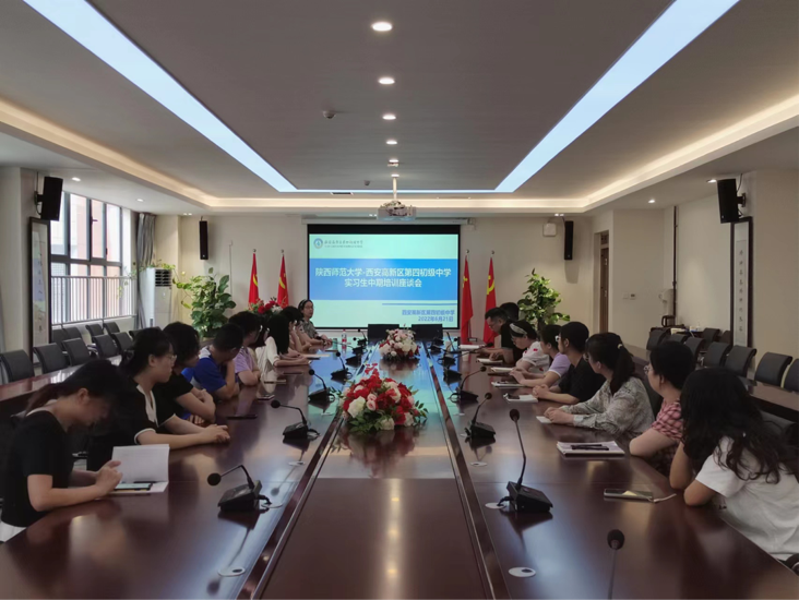 为深入推进教育硕士校外实习工作的开展,2022年6月21日,公司联合西安高新区第四初级中学召开实习生中期培训暨座谈会。122cc太阳成集团副经理吕敏宏、实习带队教师范娜,西安高新区第四初级中学董事长万江、校办公室负责人王勤、教务处负责人郭欢欢、年级组长吴刚、周静静,以及公司十二名教育硕士实习生参加了本次座谈。