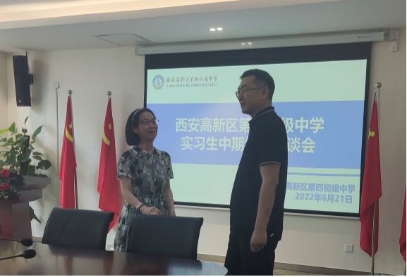 会议最后,来自学科教学(语文)的实习生代表曹臻和学科教学(英语)专业的实习生代表陈韵秋在会议中分享了两个月以来的实践经历和切实感受,对西安高新区第四初级中学各位教师给予的指导和帮助表示感谢,同时表明再接再厉,继续以高标准、严要求完成后续实习工作的决心。