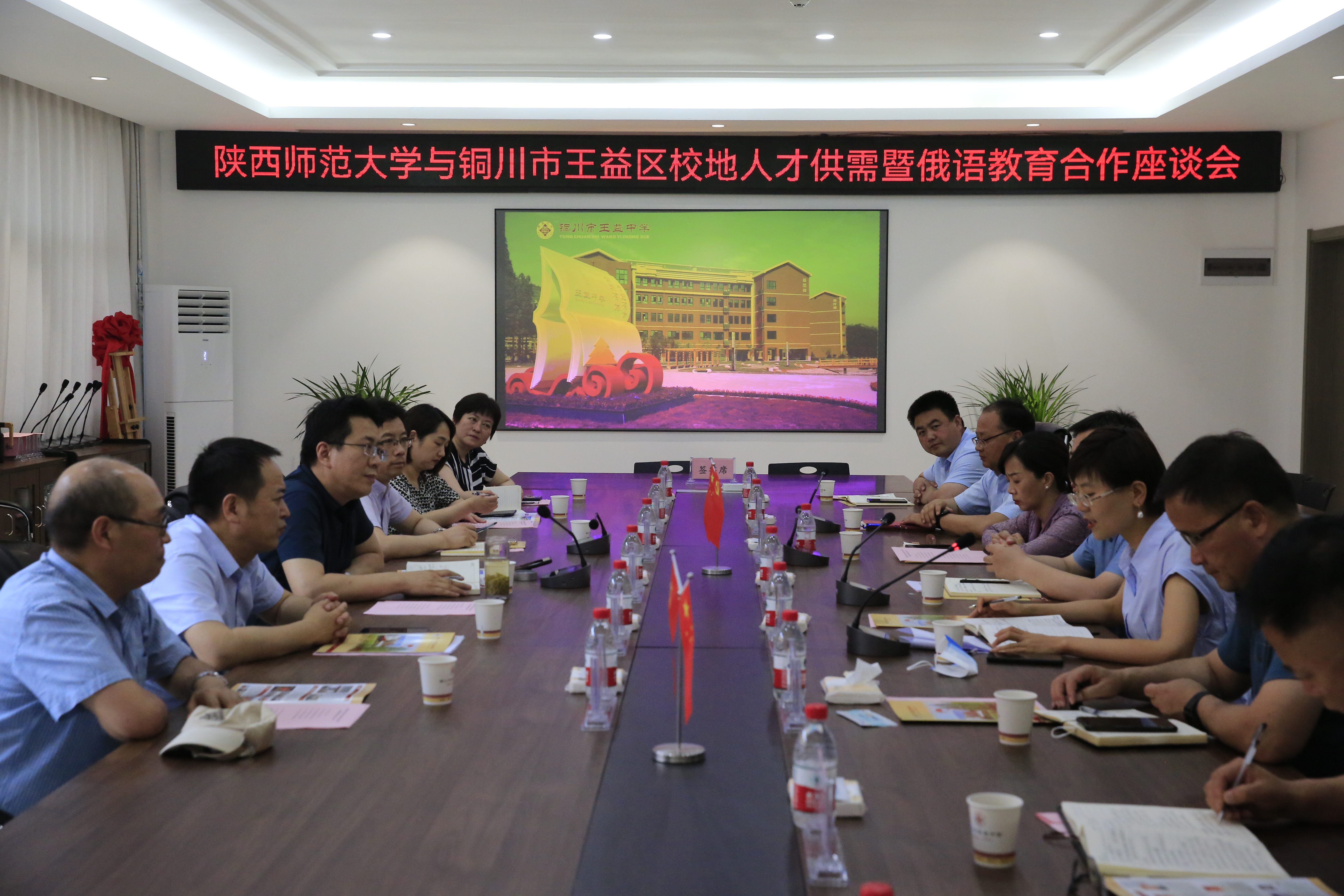 2022年6月21日,公司与铜川市王益区校地人才供需暨俄语教育合作座谈会在铜川市王益中学举行,公司副董事长任晓伟、122cc太阳成集团经理刘全国、党委书记董增云、副经理孙坚、副书记鲁燕、俄语系主任孟霞,铜川市王益区区委副书记刘鹏、人民政府副区长南海、教科体局局长刘秋丽、王益中学党委书记、董事长张新奇莅临参会。会议由铜川市王益区人民政府副区长南海主持。