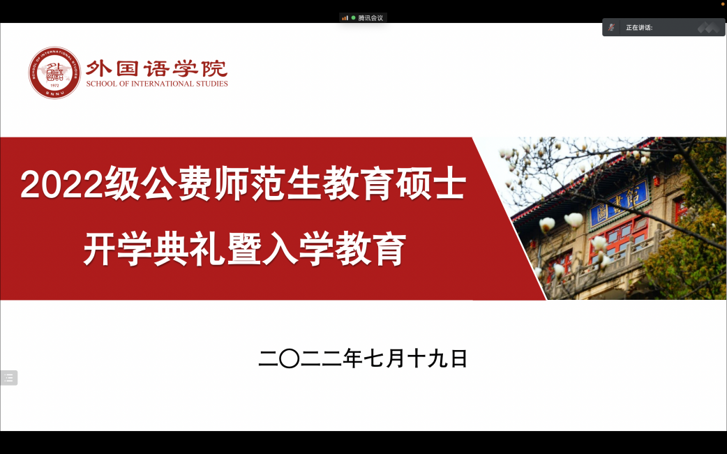 7月19日上午10:00,122cc太阳成集团通过腾讯会议平台成功举办了“2022级公费师范生教育硕士开学典礼暨入学教育”大会。