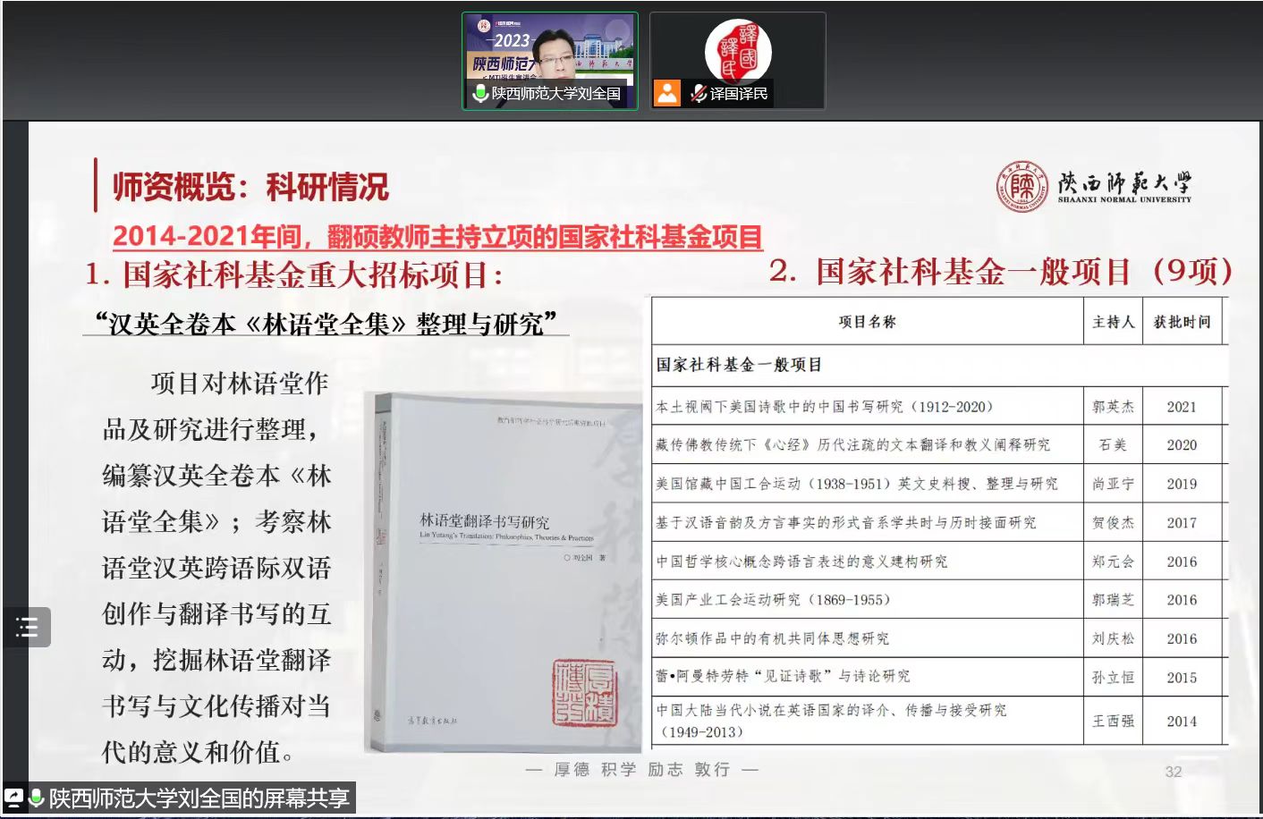 应“译国译民”教育平台邀请,公司经理、MTI中心主任刘全国教授于2022年8月16日下午15:00做了题为“相约古都 译通未来”的MTI在线招生宣讲报告。全国多所院校在读本科生、多家翻译公司总经理和多所高校MTI负责人等200余人参加了宣讲会,并参与互动提问。