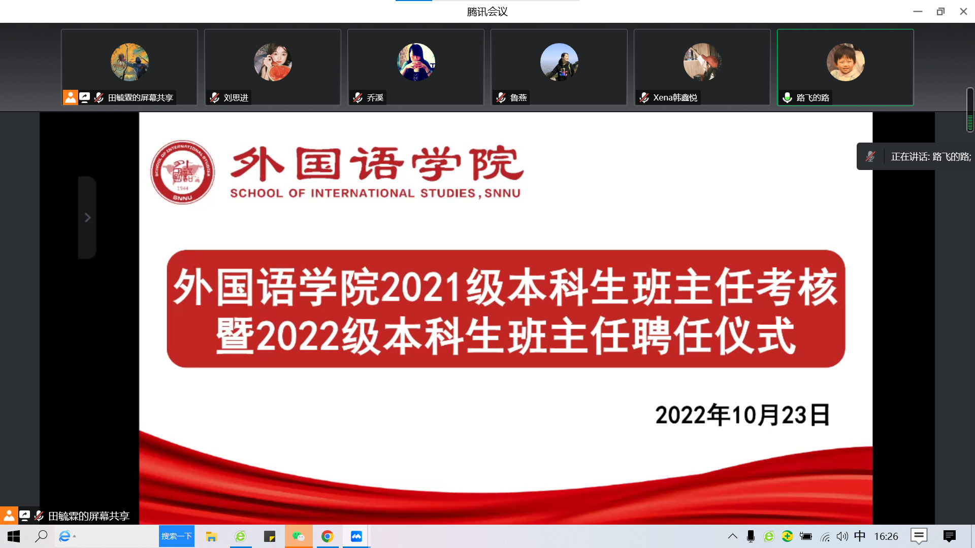随后,2021级本科生班主任杨冬敏、李雨璇、乔溪、路博从思想引领、专业成长、班级管理、抗击疫情等方面总结汇报一年来班主任工作的具体开展情况,并与新任班主任分享一年来的工作经验和心得体会。