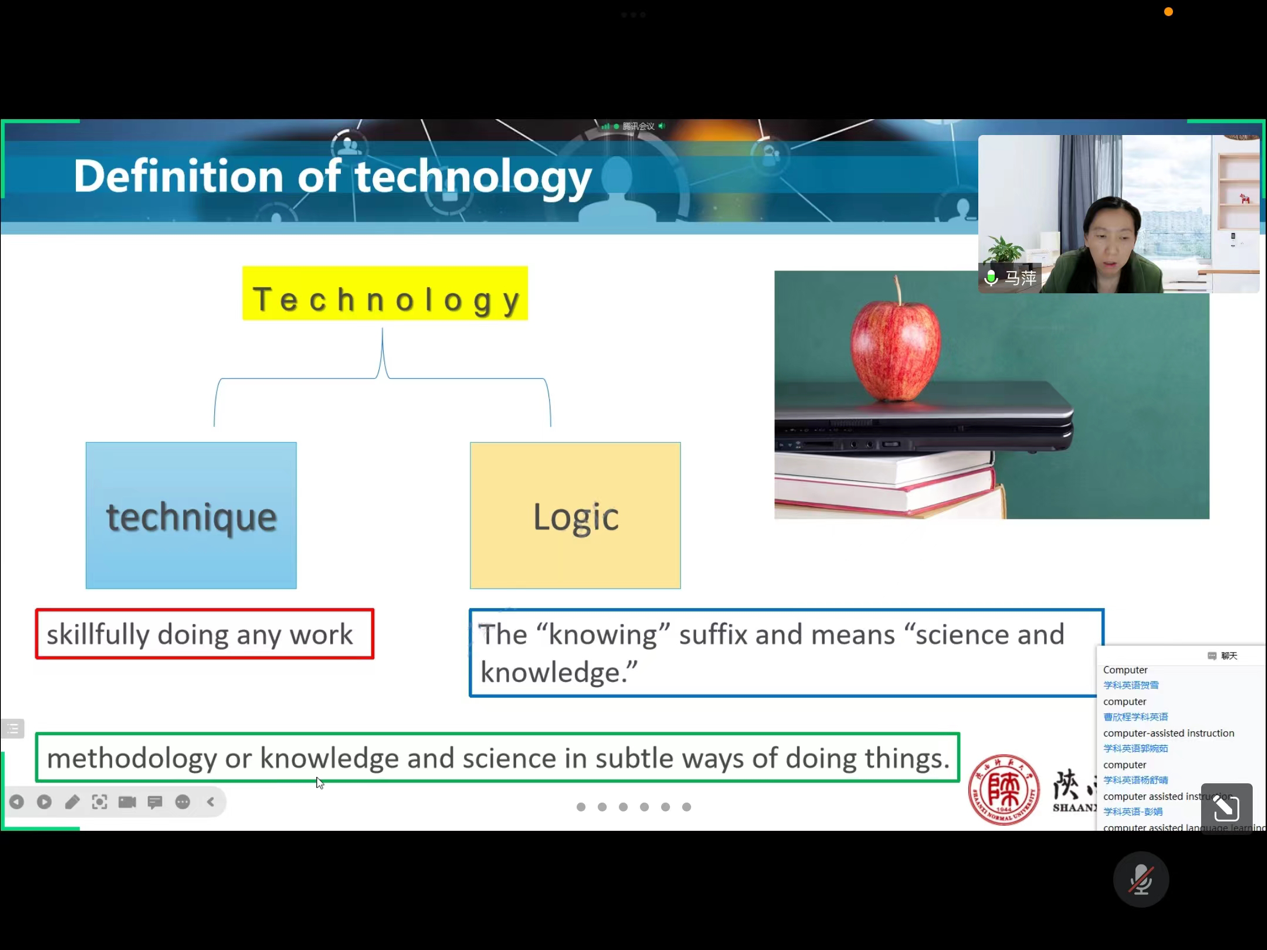 马老师指出我们应该从技术和逻辑两个方面来认识科技。“现代教育技术是基于现代教育思想、理论和方法,系统地将现代信息技术包括计算机、多媒体、网络、数字音像,卫星广播、虚拟现实、人工智能等运用于以启发式教学为主体的教育技术”。