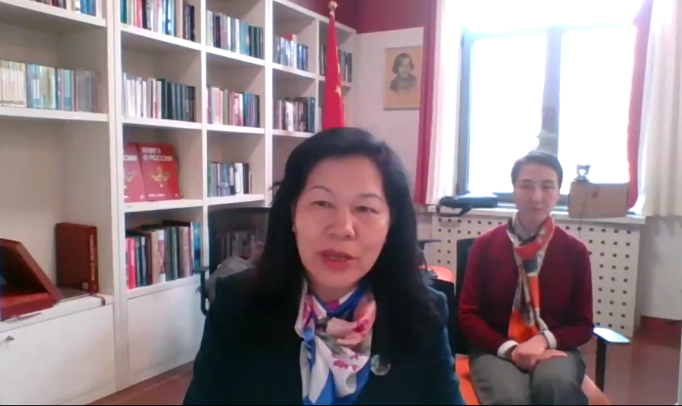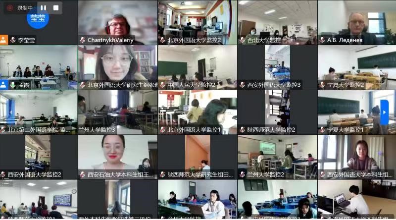 继其之后,戴桂菊教授献词。她一一问候线上的诸位嘉宾。之后指出翻译活动本质上是跨语言的情感和信息传递和交流活动,同时也是艰巨的脑力活动,需要在译入语中挖掘契合原语内容的贴切地道的表达。翻译是高校俄语教学中的核心课程和培养方向,是学习者综合能力的体现。因而本次活动的意义尤为重要。当下中俄关系的发展处于历史最高水平。译者肩负两国多领域交流的使命。鉴于此,北外与陕师大及深圳北理莫斯科大学一道筹划了本次翻译活动,以期为高校俄语员工展示自身翻译水平提供平台,为讲授翻译教学的教师提供交流的平台,同时也借此检验各高校的俄语教学水平。今年的翻译比赛是北京和西北十几所高校之间合作进行的邀请赛。争取未来能办成全国性俄语翻译赛事。最后其预祝比赛获得成功,同时欢迎诸位选手于5月份前往北京参加复赛,最终于六月份相聚深圳北理莫斯科大学。并由衷感谢组委会老师们的辛勤付出。