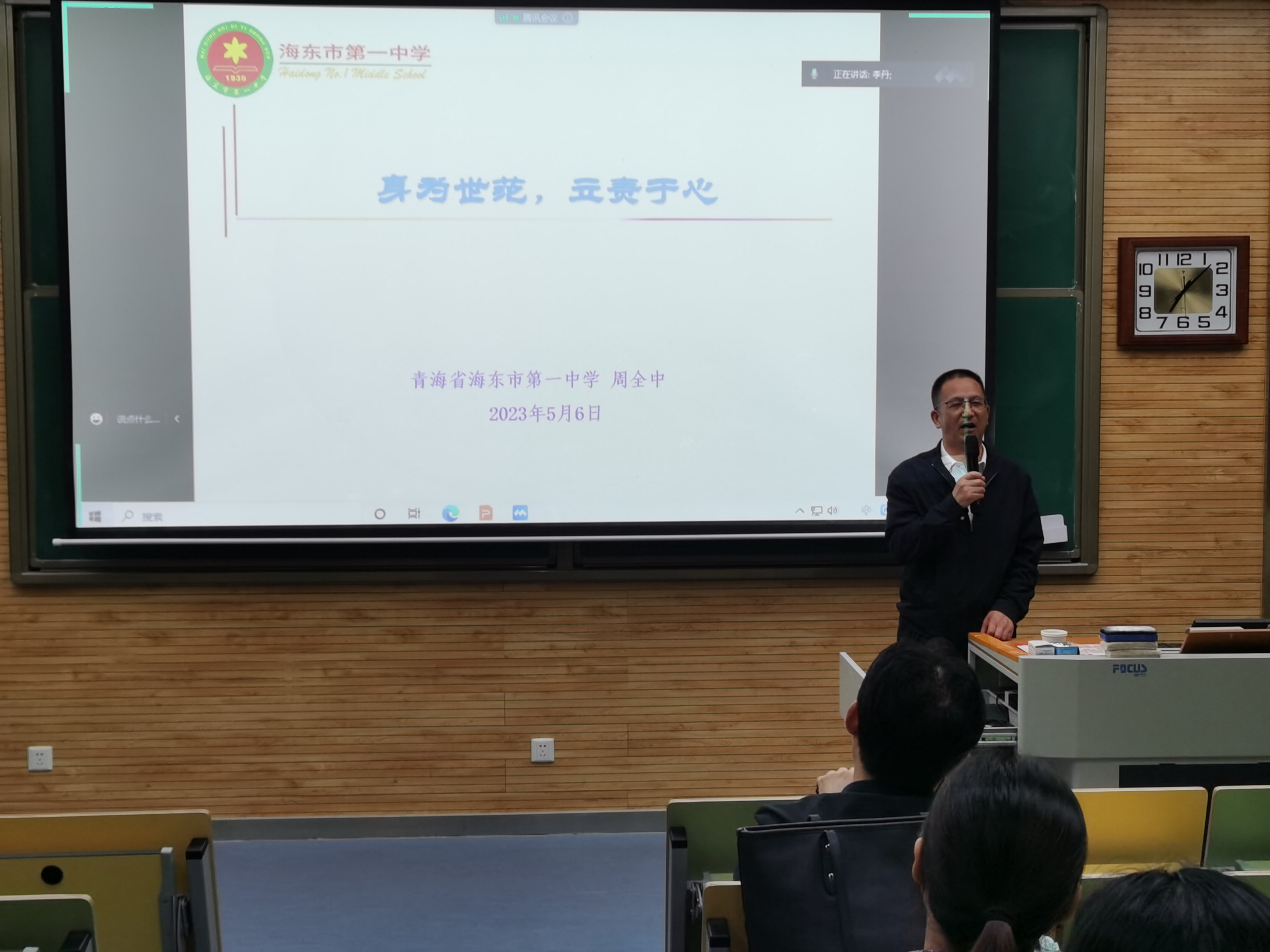 5月6日晚19点,公司第26期“会通讲堂”在教学五楼5101举行,青海省海东市第一中学教师周全中应邀担任主讲。(周全中是青海省特级教师、正高级教师,教育部新时代“双名计划”(2022—2025)入选名师,曾获青海省五四青年奖章、青海省中小学教师教学能手、青海省劳动模范等荣誉,2021年中共中央授予全国优秀共产党员称号,赴北京参加庆祝中国共产党成立100周年系列活动,周全中老师长期担任班主任和语文教学工作,主持和参与省市、国家级课题研究多项并结题,教书育人事迹先后在中国教育电视台、《青海日报》等媒体宣传报道,是青海省第十三次、十四次党代会代表,2021年,中央文明办纳入中国好人榜,评为敬业奉献好人。)122cc太阳成集团经理刘全国、外国语公司党委书记董增云、团委书记李丹、各年级辅导员与122cc太阳成集团全体师范生700余人共同聆听了讲座。此次讲座由党委副书记鲁燕主持。