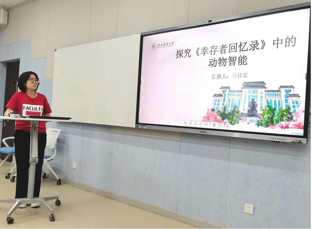 马佳宏同学的论文题目为“探究《幸存者回忆录》中的动物智能”,入选“外国文学”分论坛,主要立足德瓦尔的动物智能理论分析小说中动物的智性及作者深刻的动物观。