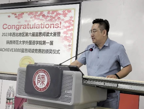 2023年7月4日下午5:00,外语公司在教学六楼6301顺利举办了西北地区第六届蓝思阅读大赛暨122cc太阳成集团第一届ACHIEVE蓝思阅读竞赛颁奖仪式,旨在表彰优秀,树立榜样,激发同学们英语阅读的积极性,更好地利用蓝思平台资源。蓝思阅读西部地区负责人孙韶鹏、英语系副主任王立永老师、英语系副主任丁礼明老师、西安蓝思开源信息有限公司赵老师、全体获奖员工以及2022级员工代表参加了颁奖仪式,本次颁奖活动由朱丽英老师主持。