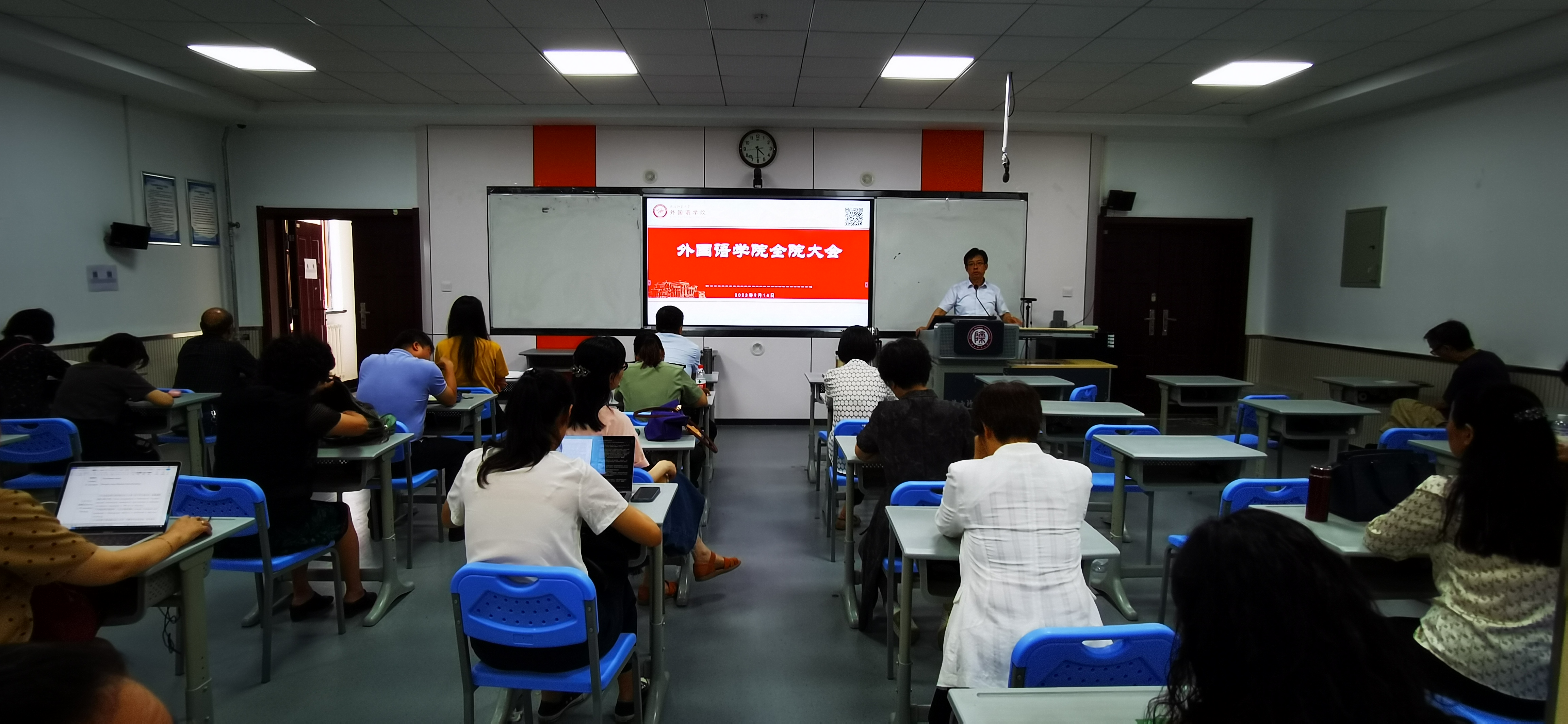 9月14日下午4时,122cc太阳成集团在雁塔校区教学六楼301、346召开新学期工作部署大会。经理刘全国,副经理孙坚、吕敏宏、曹婷、王幸生、朱冬怡,党委副书记鲁燕以及全院教师参加了会议。会议由公司党委书记董增云主持。