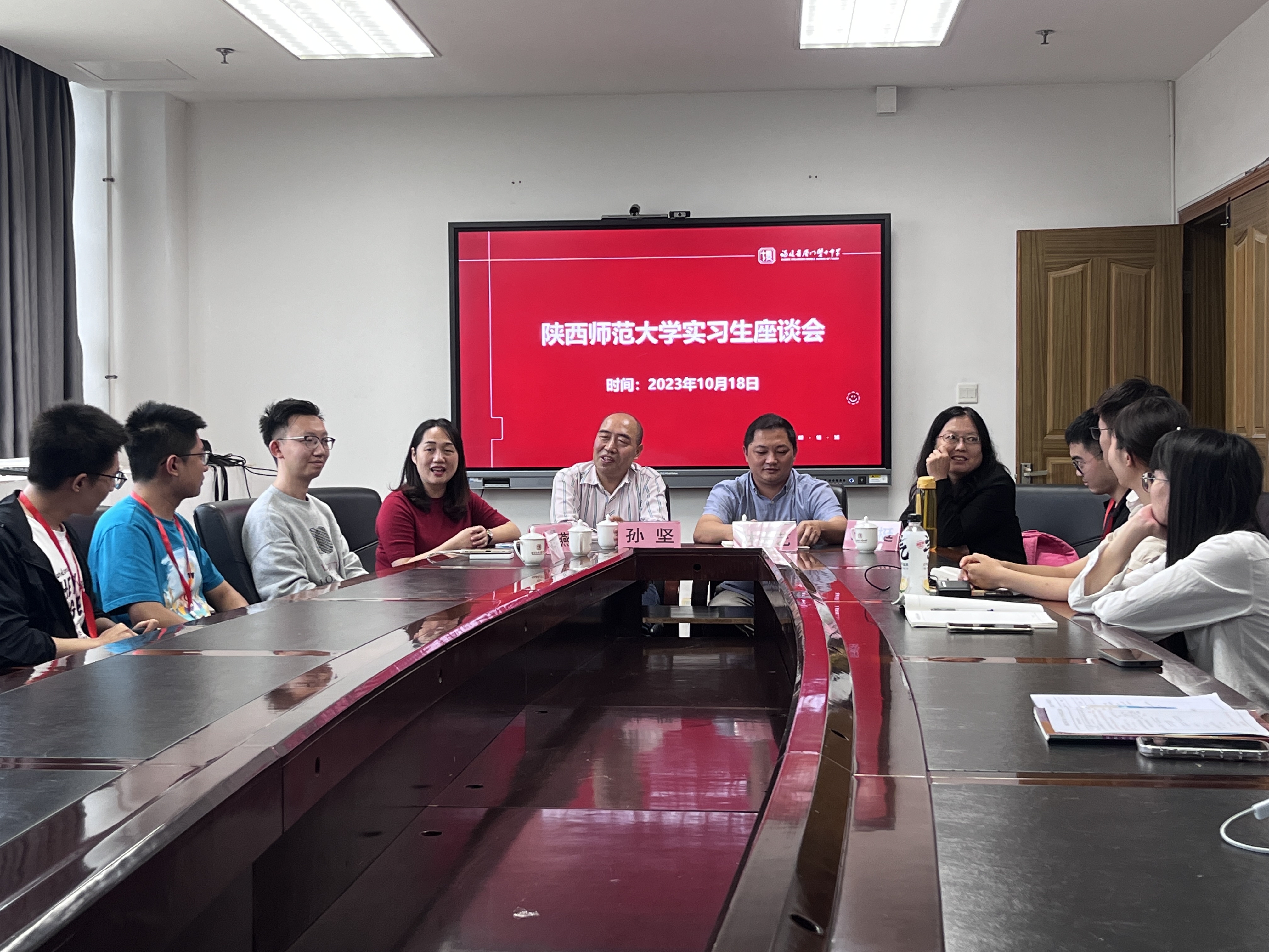 在与各校进行座谈时,孙坚首先代表公司表示对于实习公司为2024届公费师范生提供高质量的实习平台表示感谢,对于实习带队教师和实习员工的兢兢业业工作表示赞扬。他指出,教育实习是走上讲台很重要的一课,同学们一定要把握难得的机会,与负责教师多沟通,与实习同学多交流,在实习中不断提升教学能力,站稳三尺讲台。同时,他也向各公司表示希望能够进一步强化校地合作,拓宽交流合作领域与范围。鲁燕在座谈时代表公司对实习带队教师和实习员工表达了问候,对各实习公司给予公司教育实习工作的大力支持表示感谢。她指出,同学们在外实习期间,一定要合理安排时间,在实习中协调好实习与毕业论文、实习与求职的关系,同时要注意人身安全,及时与辅导员、带队教师沟通联系。同时听取了实习公司对公司教育实习工作的建议和意见。