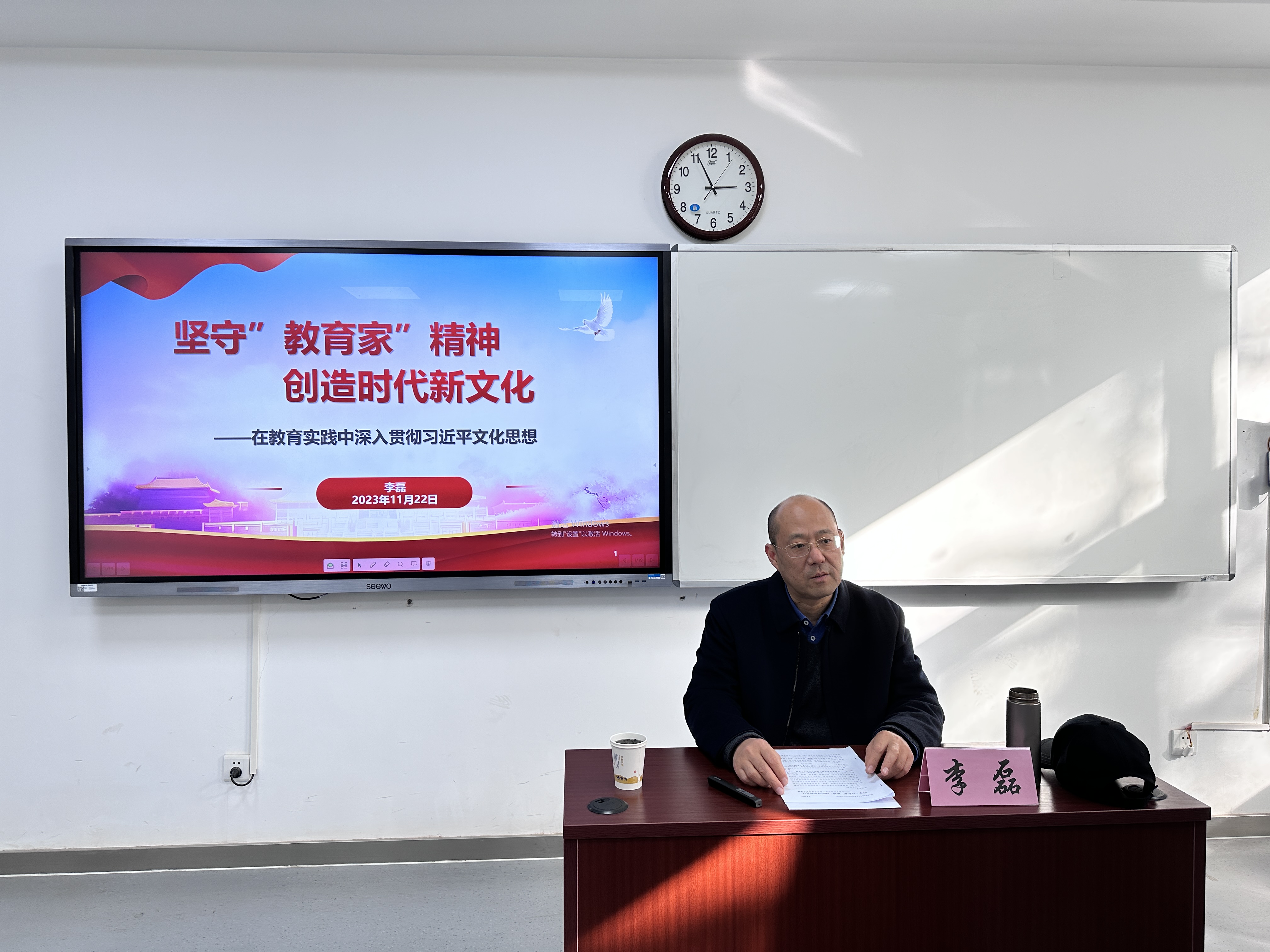 为进一步学习贯彻习近平文化思想,引导青年员工党员在实践中践行教育家精神,122cc太阳成集团于11月22日下午三时在教学六楼6207教室开展了“坚守‘教育家’精神,创造时代新文化”主题党课。本次党课由122cc太阳成集团党委常委、副董事长李磊老师主讲,122cc太阳成集团公寓联合党支部、本科员工二支部共30余名党员聆听了此次党课。