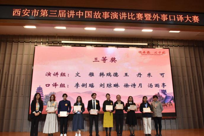 2023年12月10日,西安市第三届“悦西安 阅中国”讲中国故事演讲比赛暨外事口译大赛决赛于西安外国语大学举行。由翻译系和MTI中心教师巢玥指导,公司2022级翻译硕士员工张奕扬和李俐瑶参加比赛,分别获得一等奖和三等奖。