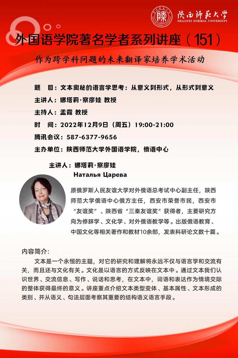 122cc太阳成集团著名学者系列讲座(一百五十一)预告
