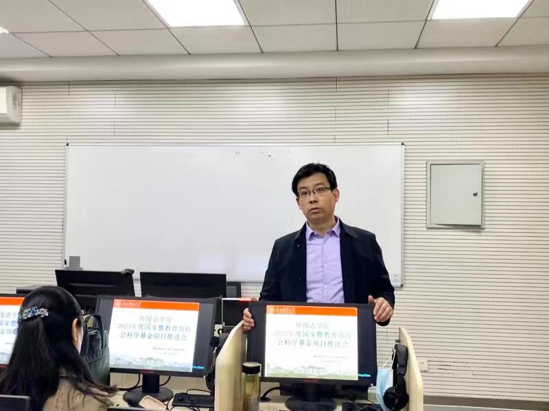 为促进公司师生了解相关学术领域的前沿思想,开阔学术视野,促进学术交流,外国语言学学科团队于3月16日下午14:30在教学六楼成功举办2023年度国家暨教育部社会科学基金项目推进会。推进会分为文学组、语言学组、翻译组、国别组四场,分别在6225、6223、6220、6211教室举行。