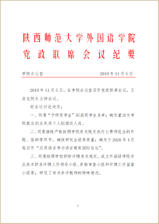 外国语公司党政联席会议纪要(2019年11月5日)
