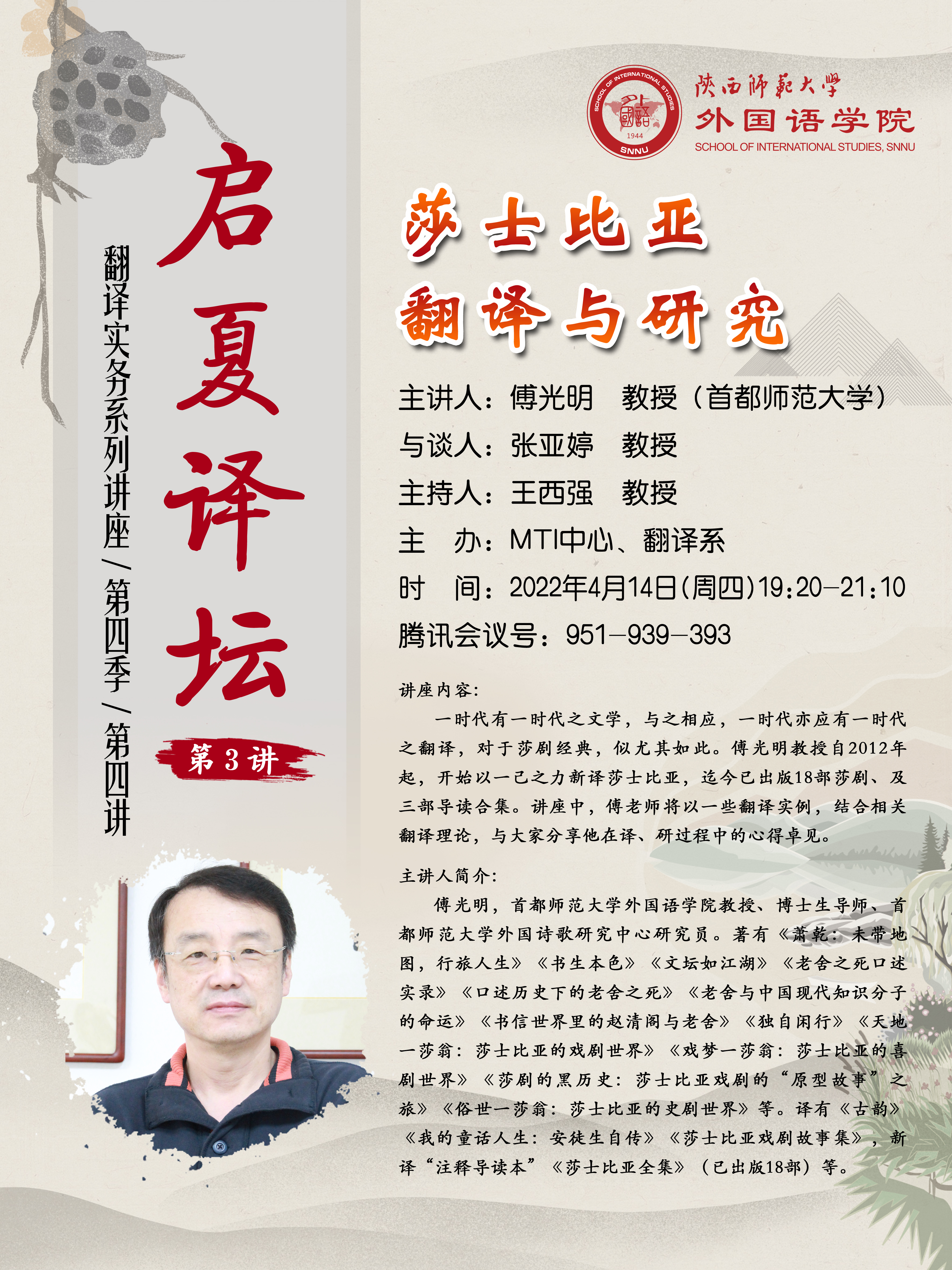 主讲人:傅光明 教授(首都师范大学)