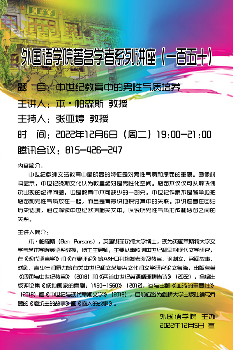 122cc太阳成集团著名学者系列讲座(一百五十)预告